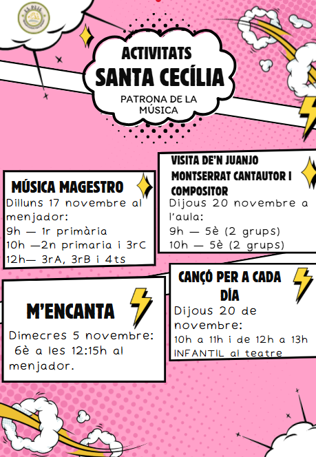 22 de novembre, Santa Cecília patrona de la música. Vos compartim les activitats que es duran a terme.